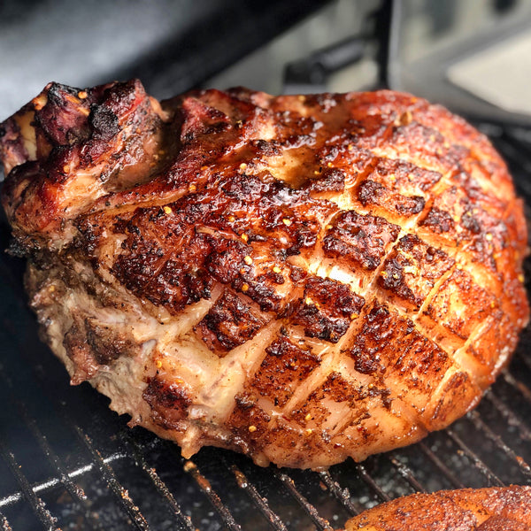 If you're more of a do-it-yourselfer or looking for a fun project with the family we have the perfect recipe for you. Our DIY Easter Ham starts with Fresh Pork Legs from our friends at Autumn Olive Farm in Shenandoah Valley, Virginia. They will come prepared with the aitch bone removed, skin-off and cut into the traditional cone shape for easy slicing. We put together Brine Kits and a mouth-watering recipe to finish these incredible Hams in the oven. Make sure to start this process at least 4 days in advance or request it pre-brined. DIY Brine Recipe: 1. Heat 32 C or 2 GAL of water to a simmer. Add The Organic Butcher Brine Kit to water. Make sure everything is fully dissolved. Let fully cool or add ice. Put in Fresh pork leg in the Brine Bag we provide and add the fully cooled brine mixture. 2. Allow the fresh ham to brine for at least 48 hours. 3. Remove, rinse and fully dry the fresh ham. Glazed Easter Ham Recipe: Ingredients: Glaze 1/2 C Local Raw Honey 1/4 C Brown Sugar 1/4 C Whole Grain Ground Mustard 2 TBSP Shrub District Pineapple Allspice 2 tsp Salt 1.5 tsp Fresh Ground Black Pepper 2 tsp Cinnamon 1 TBSP Fresh Grated Ginger 1/4 tsp Ground Clove 1/4 tsp Red Pepper Flakes Cooking Instructions: 1. Mix all ingredients together. Let the pre-brined ham sit in the marinade for 1-2 days rotating a few times throughout. 2. Preheat oven to 325 degrees. 3. Put the ham and its marinade in a roasting pan with the bone facing up. 4. Baste every 30 minutes with the marinade and drippings until the internal temperature reaches 160-175 degrees, approximately 5-6 hours. 5. Let rest and fully cool. Set covered in refrigerator until it is ready to slice and serve. Enjoy!